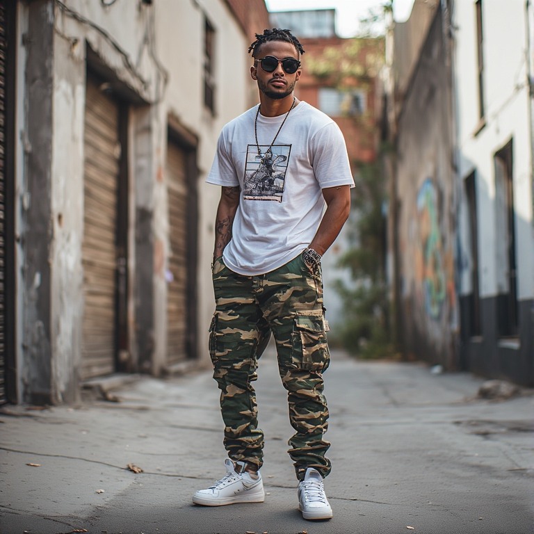6. Graphic Tee with Camo Cargo Pants