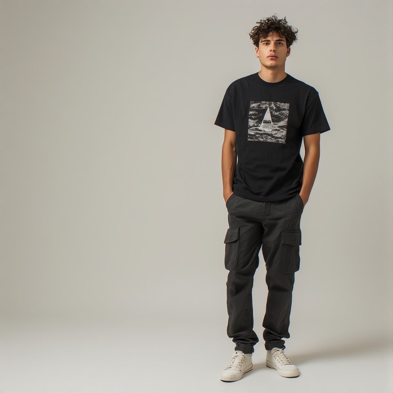 Fit is everything. Want a relaxed vibe? Go oversized. Want something cleaner? Go for a regular or slim fit. The key is balance. If your cargo pants are baggy, your tee should not be too tight. Keep it easy and natural.