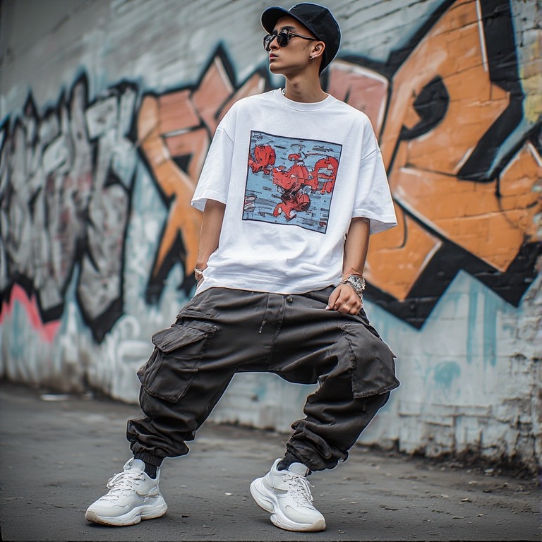 8. Streetwear Style Graphic Tee with Baggy Cargo Pants
