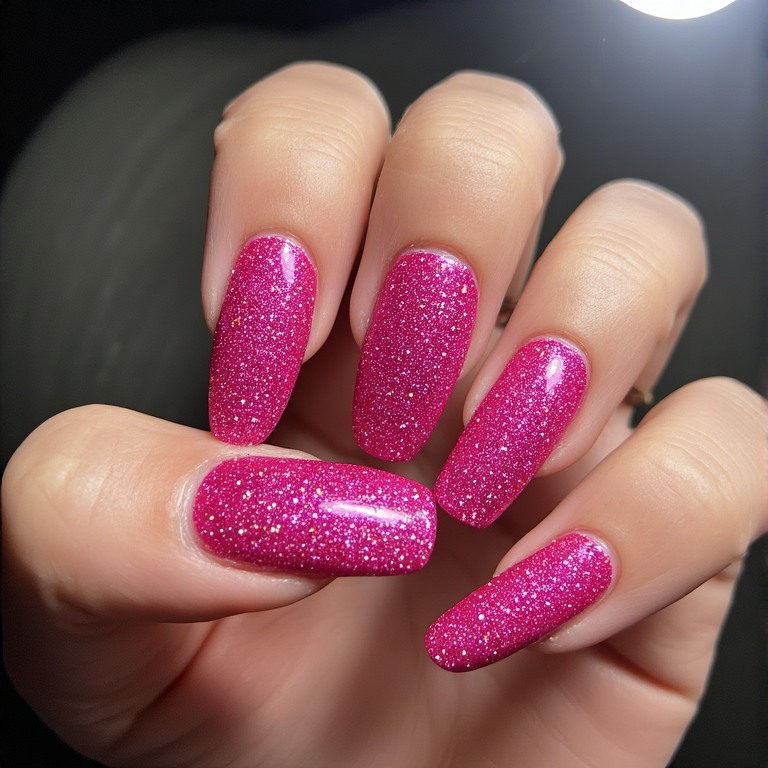 4. Glitter Hot Pink Nails