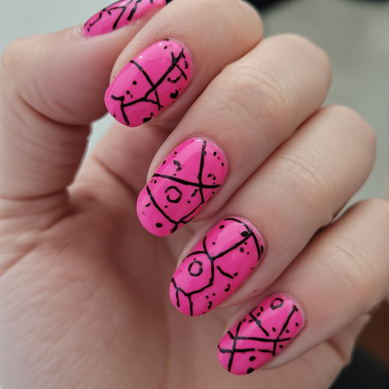 13. Hot Pink Abstract Nails