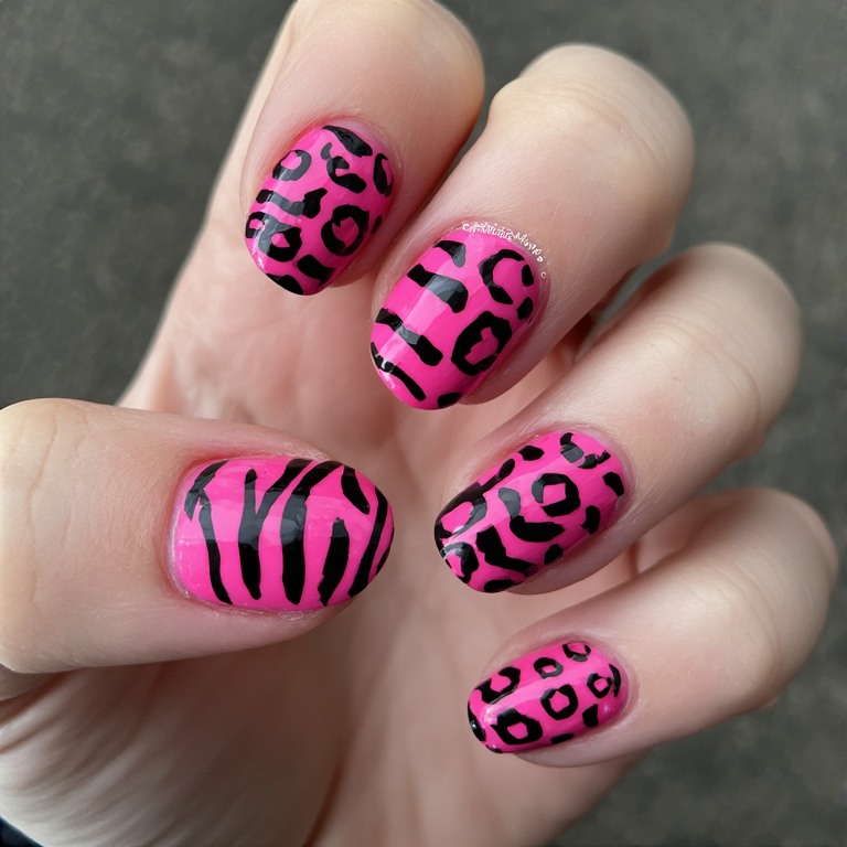 12. Hot Pink Animal Print Nails