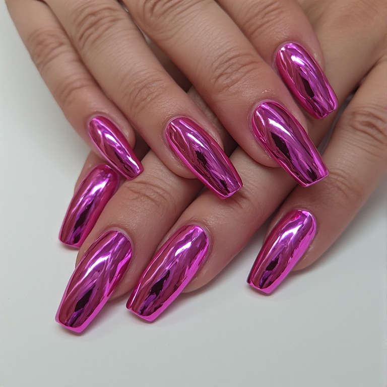 7. Hot Pink Chrome Nails