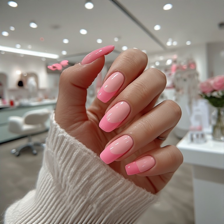 French tips are back, but with a twist—hot pink! This modern version of a classic style looks fresh and trendy.