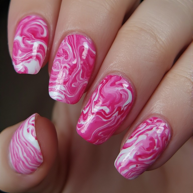 10. Hot Pink Marble Nails