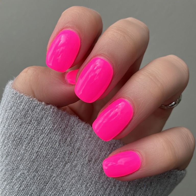 The main thing is the shine. It reflects light and makes your nails look healthy and smooth. Even a simple hot pink color looks premium with a glossy finish. It’s like adding a glass layer on top of your nails.