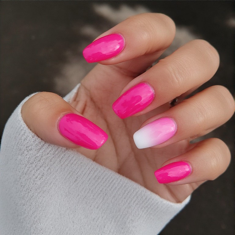 Try mixing hot pink with nude, white, or even glitter bases for a unique look.