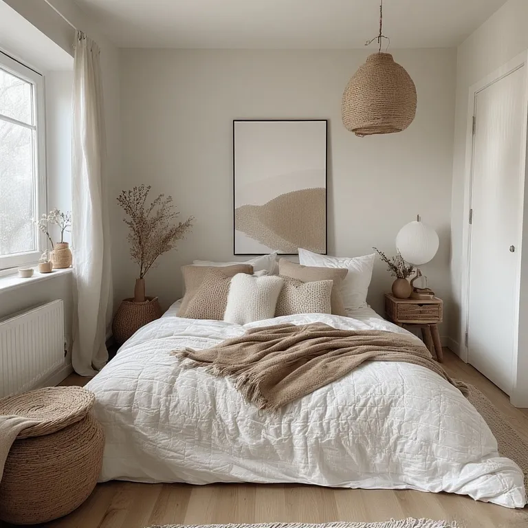 Choose soft neutrals: warm beige, pale gray, or muted green. Keep contrasts low and use texture for interest instead of bold color. A simple palette helps reduce visual noise and promotes restful sleep.
