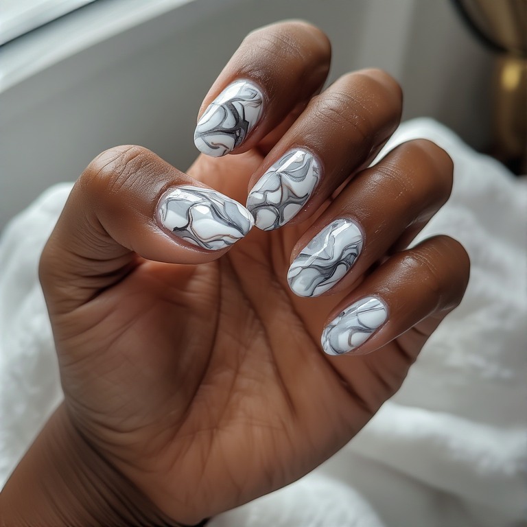 Dark skin is like a perfect background for colors. Bright shades look brighter, and soft tones look richer. It is like painting on a deep canvas where every color pops. Choosing the right design makes your hands look even more stunning.