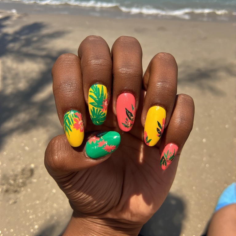 If you love bold looks, neon tips are your best friend. Bright colors like neon pink, green, and orange look amazing on dark skin. They are fun, loud, and full of energy.