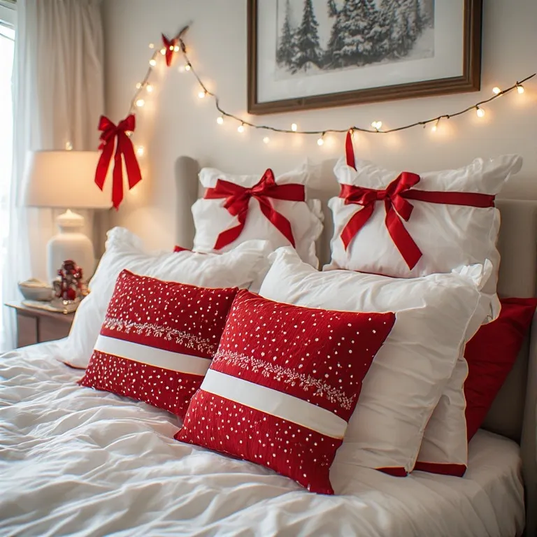 Create simple red pillow covers using fabric. Add white ribbons or small holiday patches. Even tying red bows around plain white pillows looks festive.