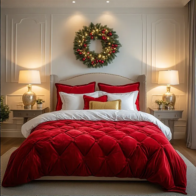 Pair red velvet with crisp white sheets. The contrast makes the red stand out even more. Add gold or silver pillows for a luxury holiday feel.