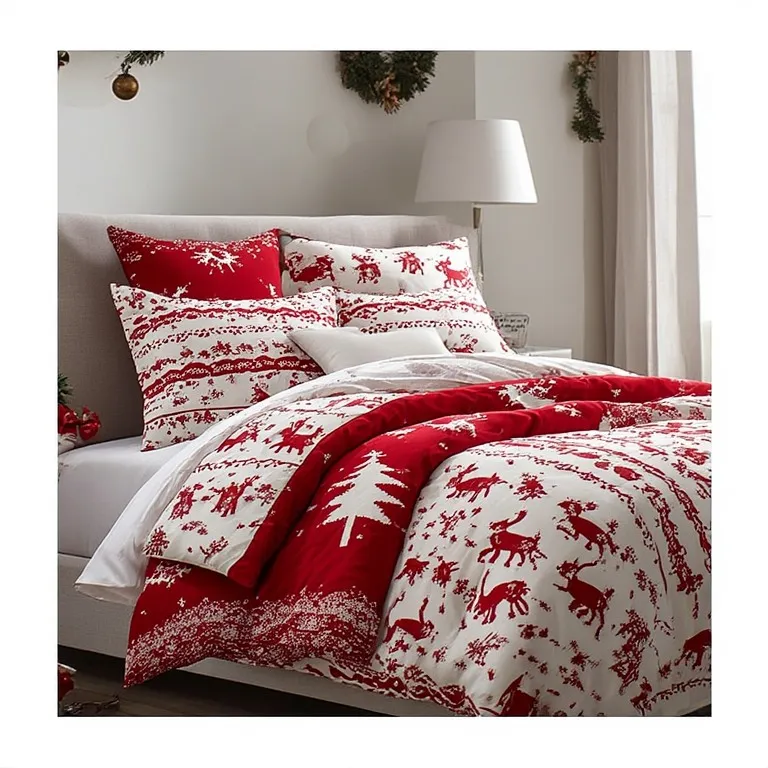Nordic red and white bedding usually has simple patterns like reindeer, tiny trees, or geometric shapes. The designs are not too busy. They are balanced and soft.