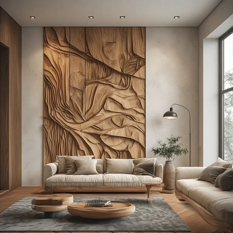Wooden wall sculptures add warmth and organic charm to modern interiors. Carved panels, layered pieces, or natural wood forms bring texture and life to plain walls. Different finishes, from raw oak to polished walnut, create varying moods.