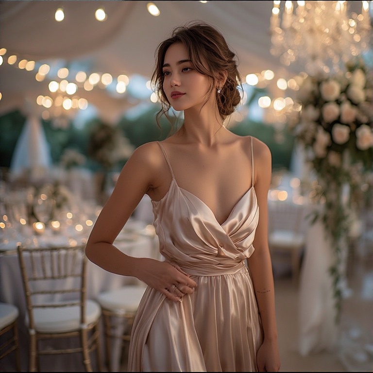Satin and silk feel smooth and luxurious. They are perfect for evening weddings.