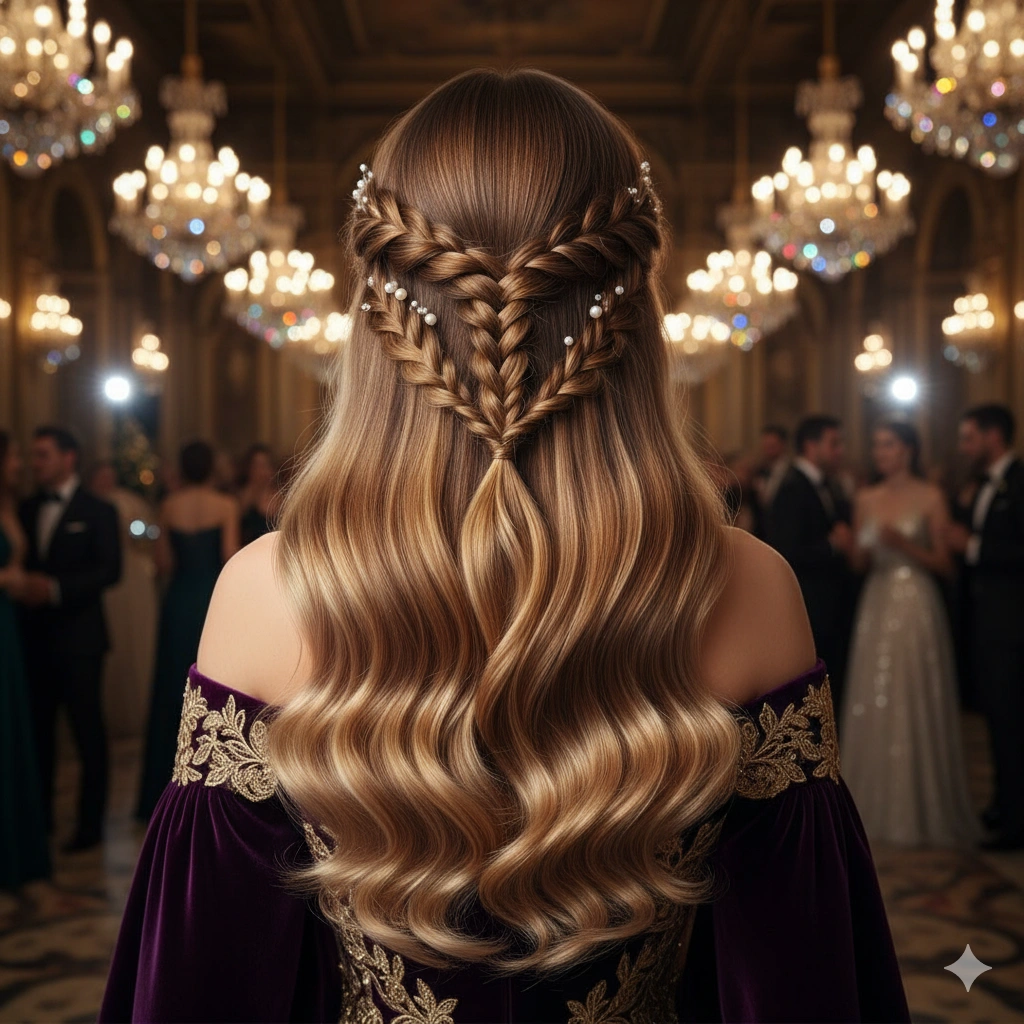 For a bold and unique look, the zigzag waterfall braid is a show-stopper. Instead of a straight pattern, the braid flows in a zigzag motion across the crown, creating a dynamic design. This waterfall braid for long hair is perfect for parties, photo shoots, or events where you want to stand out. It pairs well with sleek straight hair or soft curls. Adding hair glitter or accessories enhances the dramatic effect, making it a trendy and youthful hairstyle.